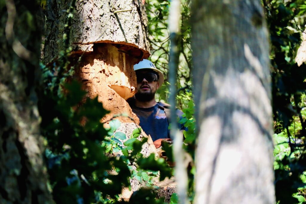 Certified timber fallers safely remove dangerous trees threatening infrastructure or human safety.